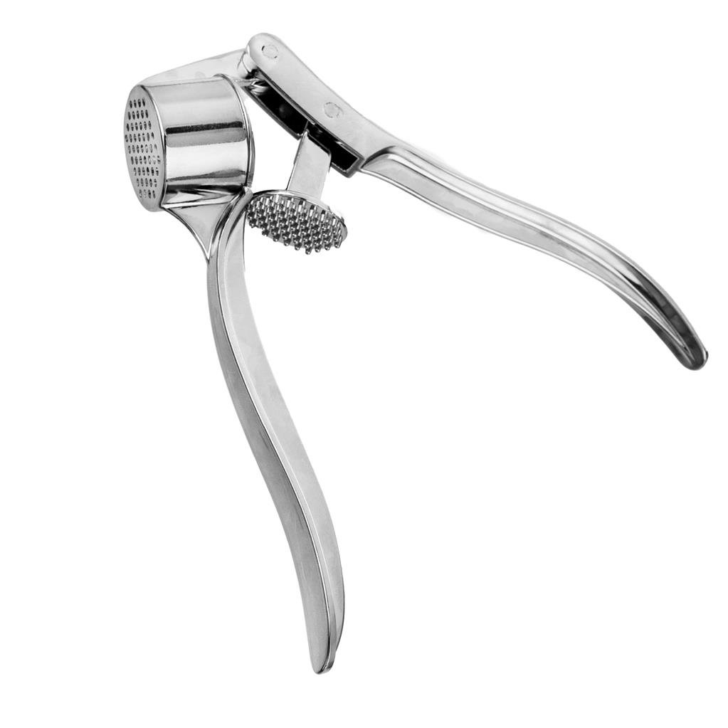 Praska do czosnku z luksusowej serii LUXY zastąpi pracochłonne tarcie czosnku nożem. Zaletą jest to, że na części dociskającej znajdują się wypustki, które podczas przeciskania czosnku oczyszczają otwory, dzięki czemu nie trzeba ich potem dodatkowo czyścić przy myciu. Materiał: chromowany metal. Wymiary: długość 15 cm. Nadaje się do zmywarki.
