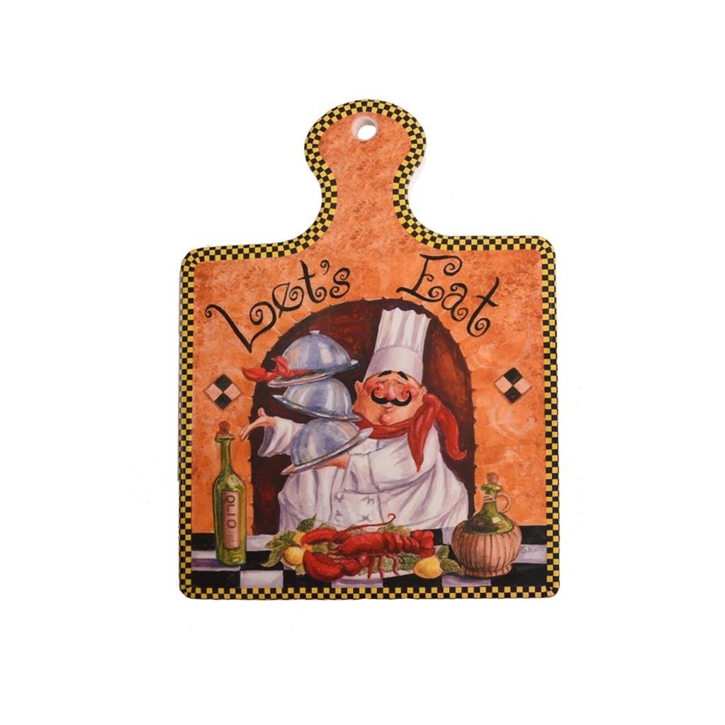 Dekorace do kuchyně, na chalupu či chatu skvěle doplní interiér. Můžete ji využít také jako podložku pod hrnec - můžete na ni odložit horký hrnec, který tak nezničí kuchyňskou linku nebo ji využijete při servírování přímo na stole. Obdélníkový tvar. Nesmeká se po podložce. Materiál: keramika, korek. Varianty dekorů víno/kuchař. Snadná údržba. Rozměry: 17x24x0,9 cm.