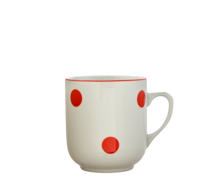 Hrnek s klasickým červeným puntíkem je vyrobený z kvalitního českého porcelánu z Dubí. Je vhodný do myčky na nádobí i do mikrovlnné trouby. Obsah 0,3l, výška 9,4cm, průměr 8,4cm. Hrnek je vyrobený v České republice. przeczytaj całość