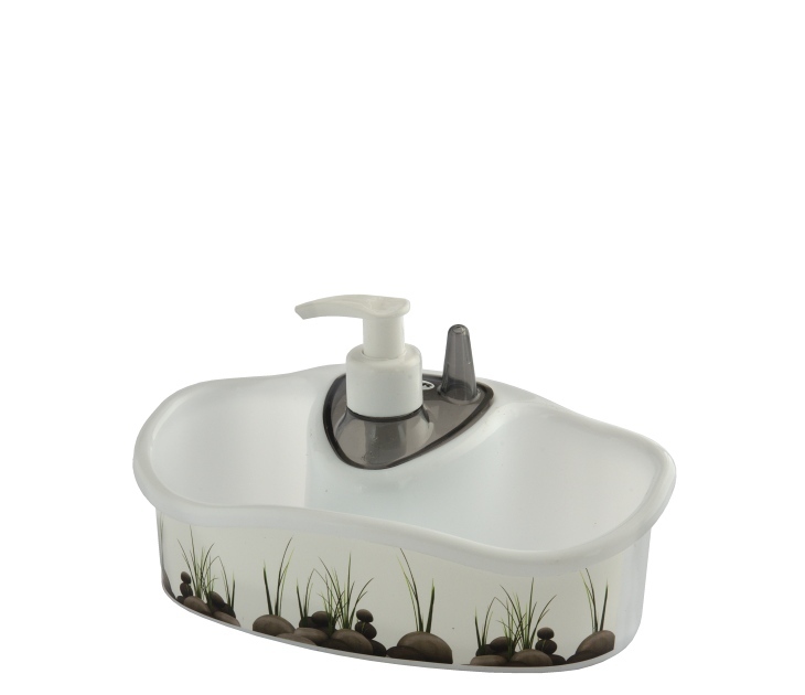 Stylový dávkovač mýdla nebo jaru široký v dekoru kameny udělá parádu na umyvadle či dřezu. Odkládací prostor pro hygienické potřeby, kartáčky nebo houbičku je praktickým dopňkem tohoto prostorného dávkovače. Ovládání mechanickým stisknutím pumpičky. Materiál: plast. przeczytaj całość