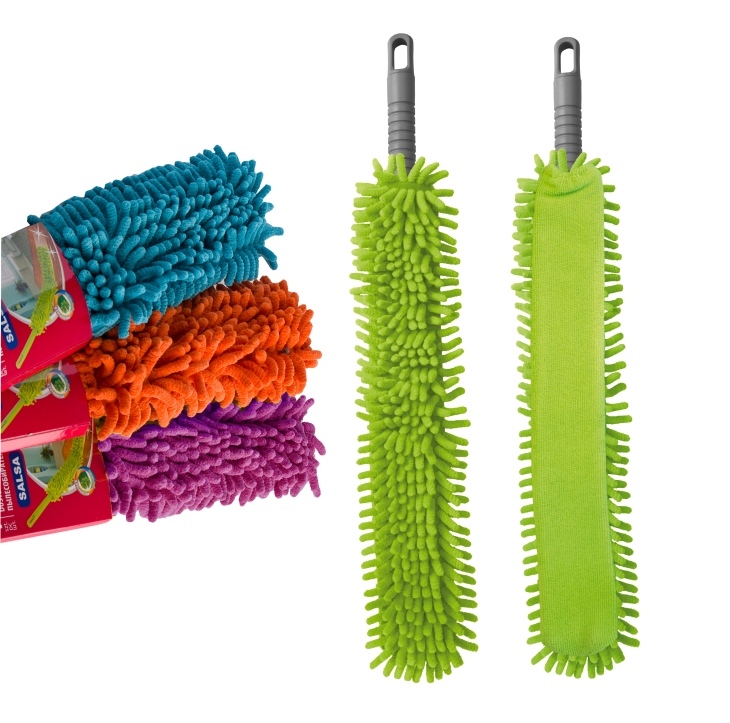 Ta miotełka o wymiarach 56x6,5 cm została zaprojektowana tak, aby doskonale przylegać do powierzchni i bezpiecznie usuwać kurz, nie uszkadzając ich. Dzięki wysokiej jakości mikrofibrze wychwytuje nawet najdrobniejsze cząsteczki kurzu i zabrudzeń, które w przeciwnym razie mogłyby pozostać na meblach, półkach czy sprzęcie elektronicznym. Smukły kształt umożliwia łatwe czyszczenie trudno dostępnych miejsc - na przykład między książkami, za telewizorem czy na żaluzjach.