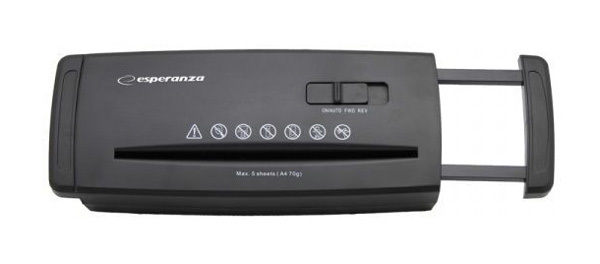 Skartovač papíru ESPERANZA EN104 disponuje podavačem s kapacitou na 5 listů. Rychlost skartace dosahuje 3,5 m / min. Zařízení zničí dopis s maximálním rozměrem 220 x 300 mm. Skartovač disponuje funkcí zpětného chodu, automatickým spuštěním, bezpečnostním zámkem a tepelnou pojistkou, která zabrání přehřívání zařízení.
