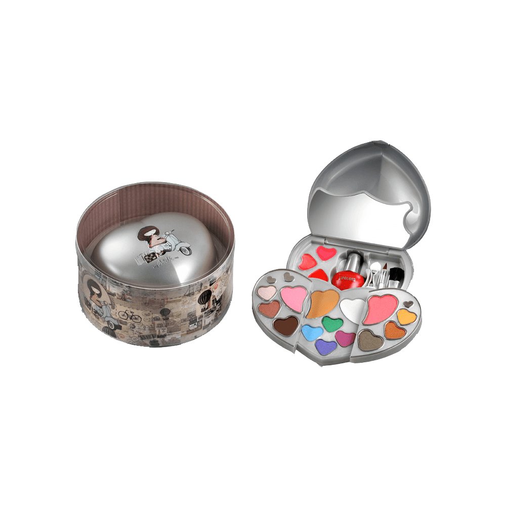 Líčící sada SANTORO London v krabičce ve tvaru srdce s motivem roztomilé panenky ANEKKE obsahuje oční stíny, pudrovou tvářenku, rozjasňovač, lesk na rty, make-up včetně štětečků. przeczytaj całość