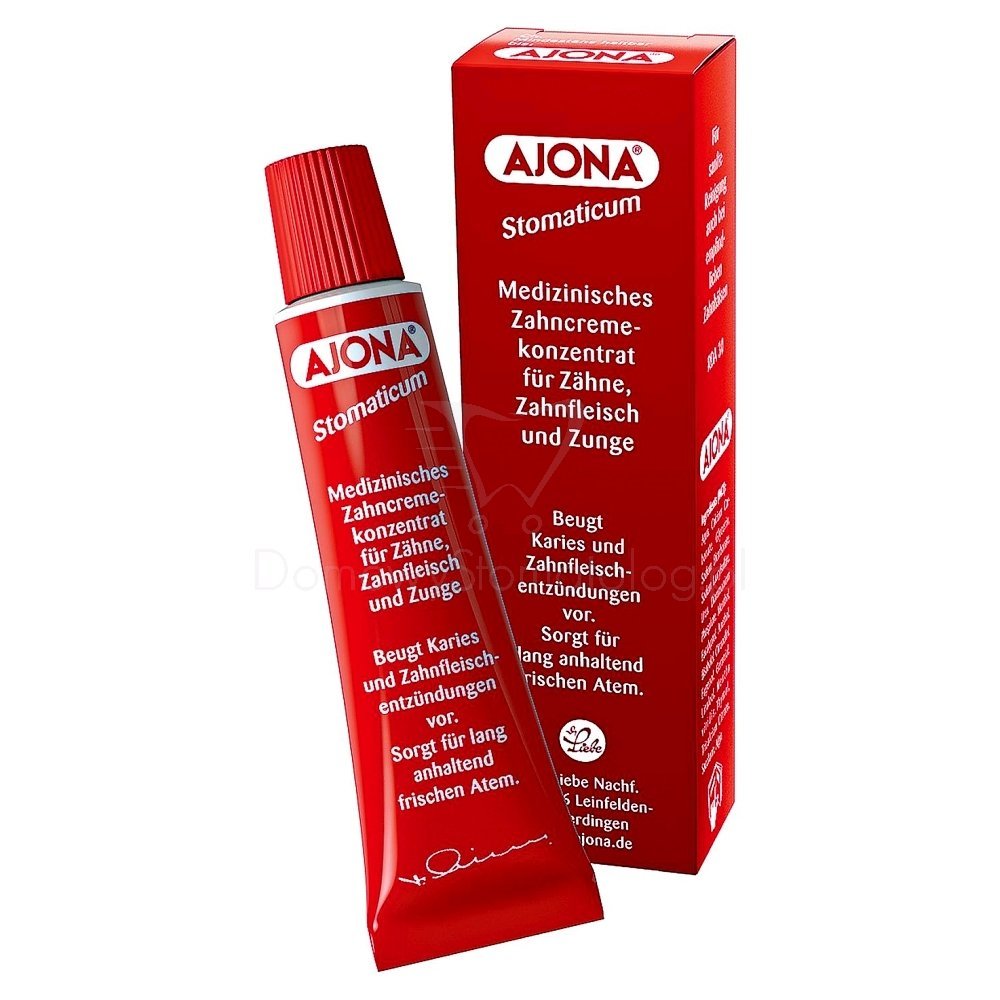 AJONA Stomaticum to wyjątkowa pasta do zębów, która dzięki swojemu specjalnemu składowi pielęgnuje nie tylko zęby, ale także dziąsła i język. Nie dba jedynie o codzienną higienę jamy ustnej, lecz chroni Cię przed powstawaniem próchnicy, zapalenia dziąseł i jednocześnie zapewnia długotrwałą świeżość oddechu.