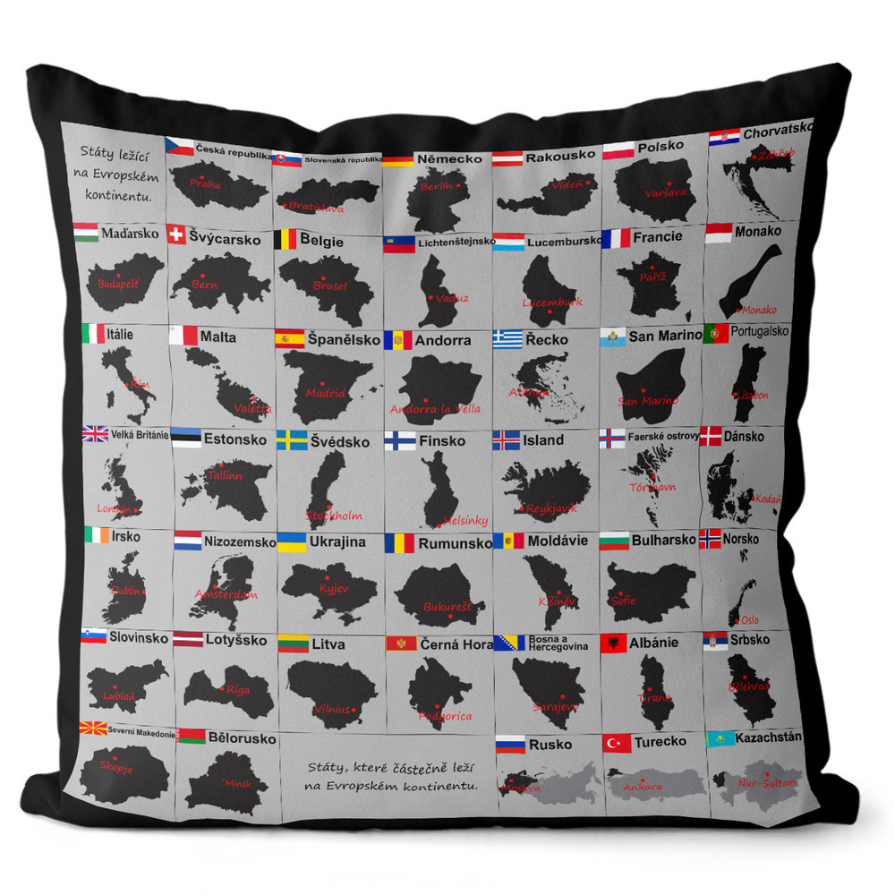 Polštářek Hlavní města (Velikost: 40 x 40 cm)