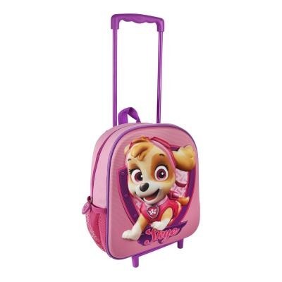 Batoh Tlapková patrola 3D růžový. S pevnými 3D zády , praktickým uchem na nošení v ruce, vysouvacím držadle, kolečky a nastavitelnými a polstorovanými popruhy, s dvěma zipy a bočními kapsami na pití. przeczytaj całość