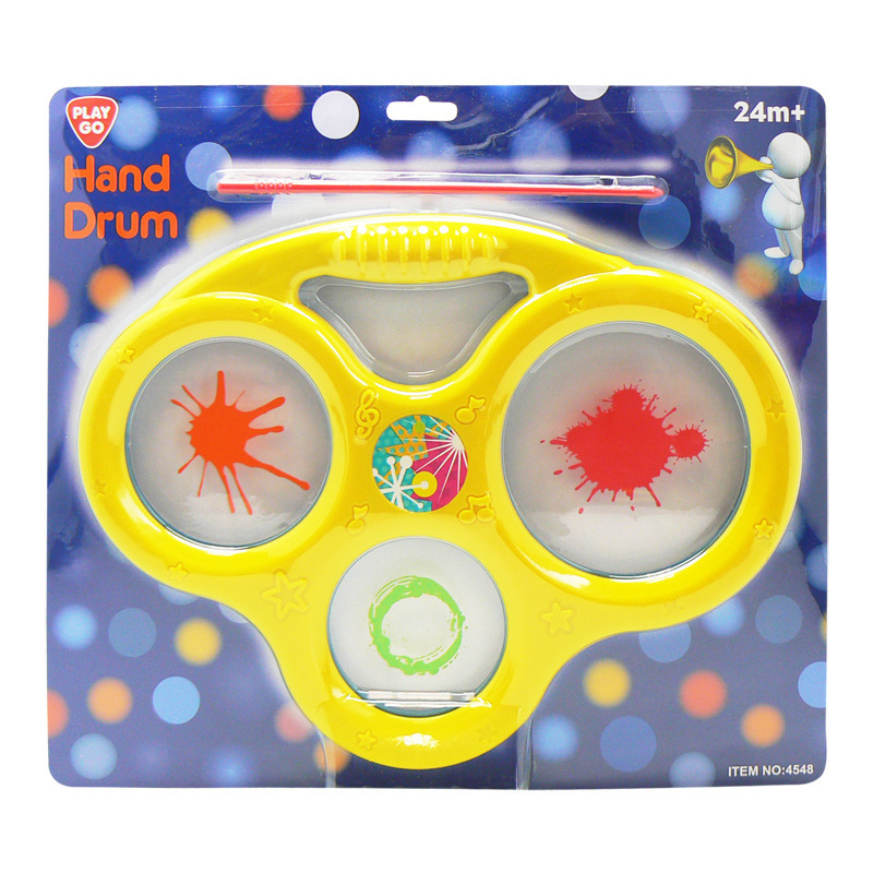 Ruční bubínek. Lehký, pěkný a dobře uchopitelný bubínek pro děti. Tři hrací plochy. przeczytaj całość