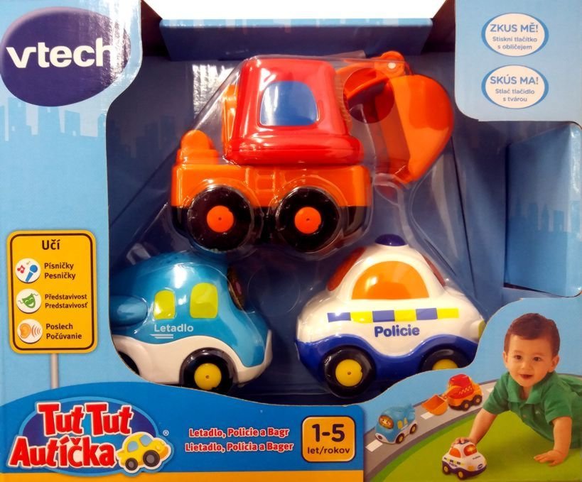 Tut Tut Autíčka sada 3ks plast 8-12cm na baterie se zvukem se světlem v krabici 23x19x7cm Vtech