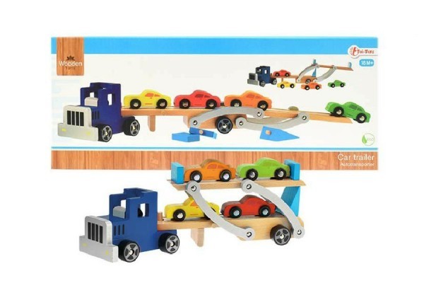 Auto přepravník + auta 4ks dřevo 55cm v krabici