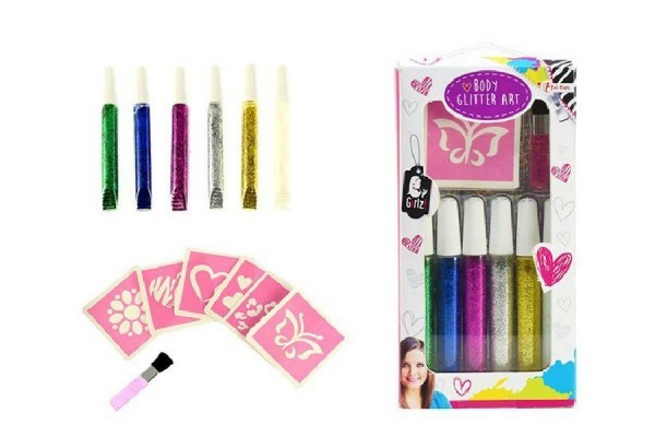 Tetování třpytivé se šablonami barevné v krabičce 10x20x3cm