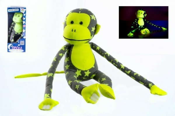 Opice svítící ve tmě plyš 45x14cm šedá/žlutá v krabici