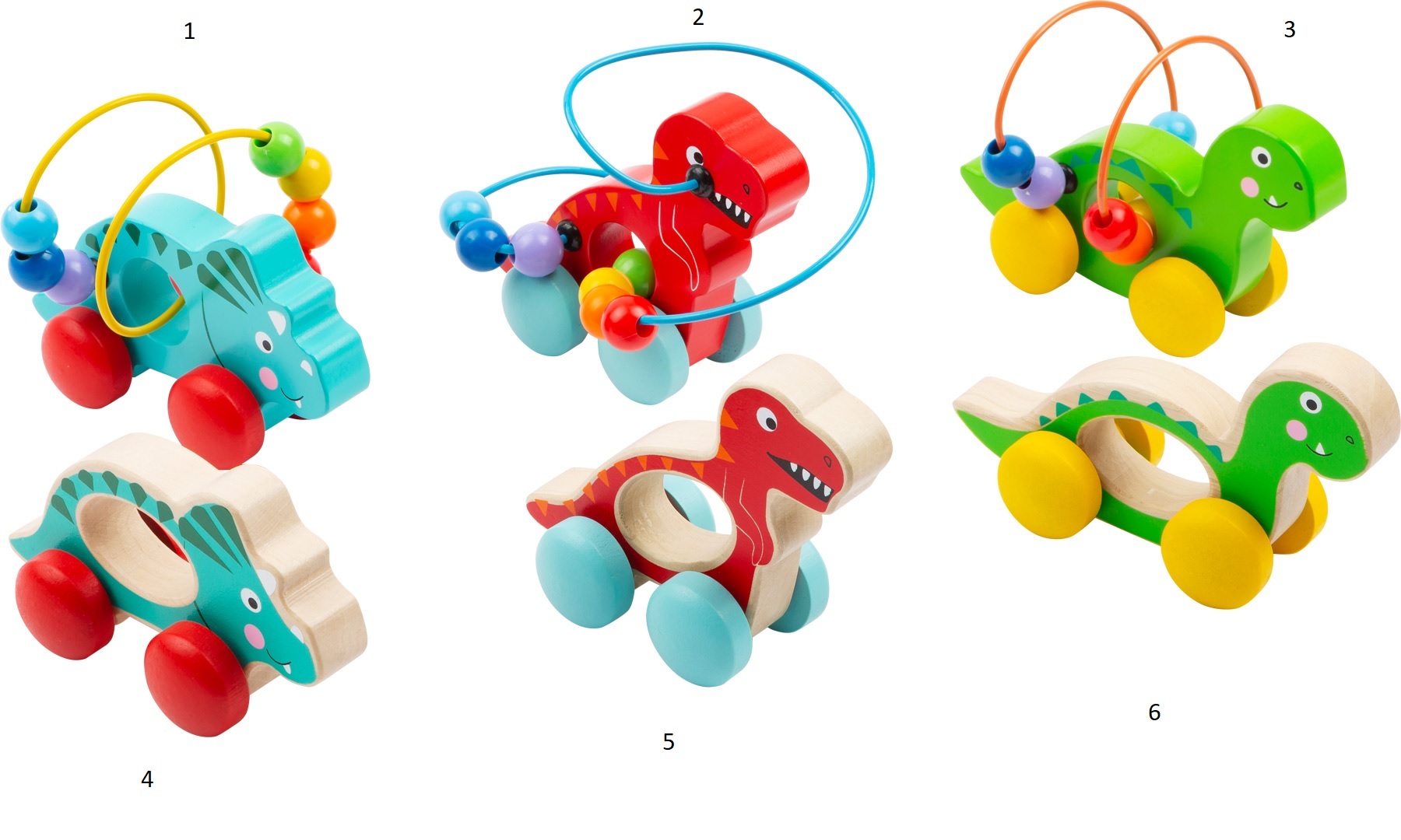 Small Foot Dinosaurus na kolečkách 1 ksBarevní kamarádi na hraní, které mohou děti posouvat, díky kolečkům. T-Rex, triceratops nebo brachiosaurus, svého oblíbence si vybere každé dítě. Zvířata na kolečkách ve 2 verzích, první mají otvory k jednoduchému úchopu a druhé korálky na drátku – obě ale...