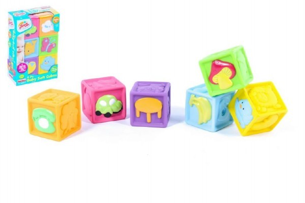 Dětské pískací kostky gumové 6ks v krabici 16x23x6cm 6m+