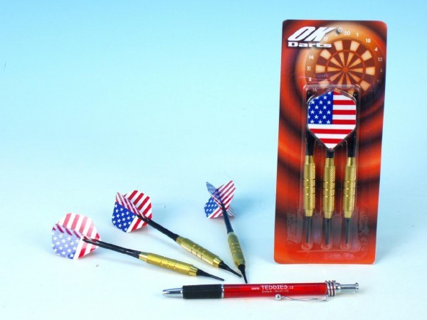 Zestaw rzutków z motywem flagi USA. Rzutki mają wymienne trzonki i lotki oraz metalowe groty. Nadaje się dla dzieci od 3 lat. przeczytaj całość