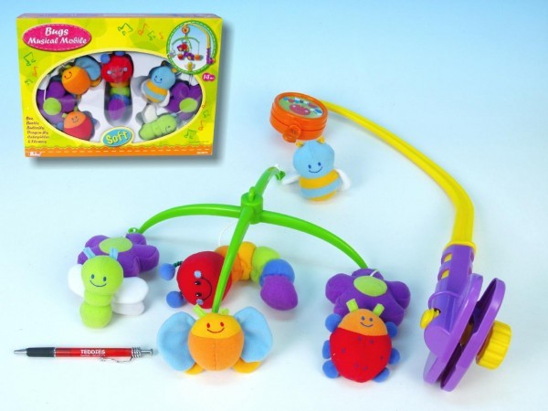 Kolotoč nad postýlku s plyšovými barevnými broučky miminko zabaví a pomůže mu usnout. Na každém ze čtyř plastových ramenech najdete jednoho z broučků a uprostřed většího červíka. Kolotoč hraje příjemnou melodii a má jednoduchý systém upevnění k postýlce. Kolotoč snadno sestavíte dle obrázkového návodu.