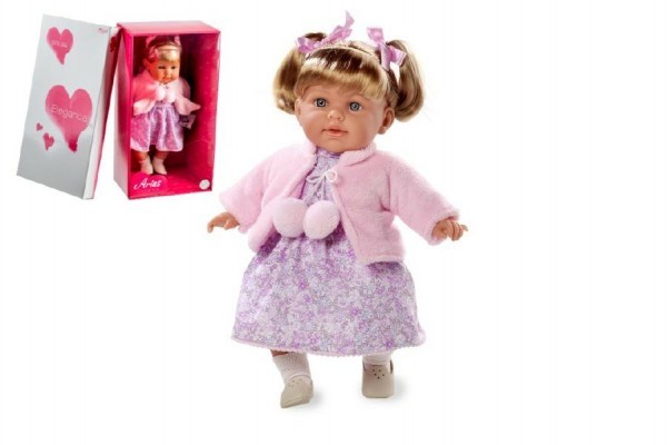 Panenka Arias vonící 42cm růžové šaty smějící se měkké tělo na baterie v krabici