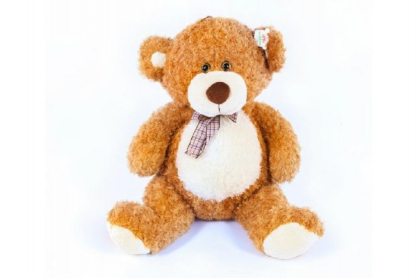 Medvěd s mašlí velký plyš 80cm světle hnědý kudrnatý 0m+