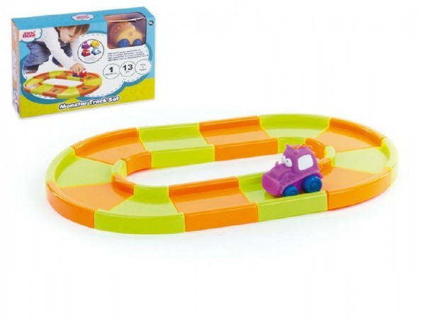 Barevná oválná dráha pro nejmenší. Balení obsahuje 12 dílků, které se jednoduše skládají i rozkládají. Součástí je autíčko, které je vyrobeno z měkkého příjemného materiálu. Rozměr autíčka: 7 cm Rozměr balení: 28 x 20 x 5,5 cm Vhodné od 18 měsíců przeczytaj całość