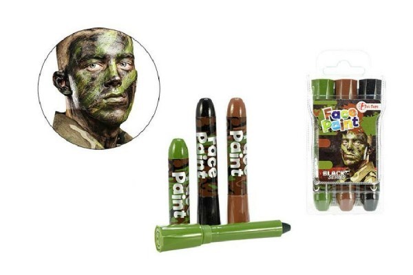 Barvy obličejové armáda 3ks v plastovém pouzdru 6x11cm karneval