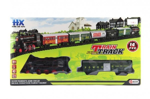 Vlak s kolejemi 14ks plast na baterie se zvukem se světlem v krabici 48x25x6cm