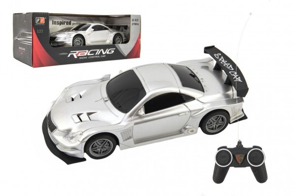 Auto RC sport plast 20cm stříbrné na baterie 27MHz v krabici 26x10x12cm