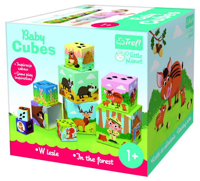 pochoutky. Sada obsahuje:- 10 barevných stohovacích kostek (farma nebo les)-