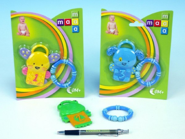 Chrastítko zvířátko Maamaa plast 9cm asst 3 druhy na kartě od 0 měsíců