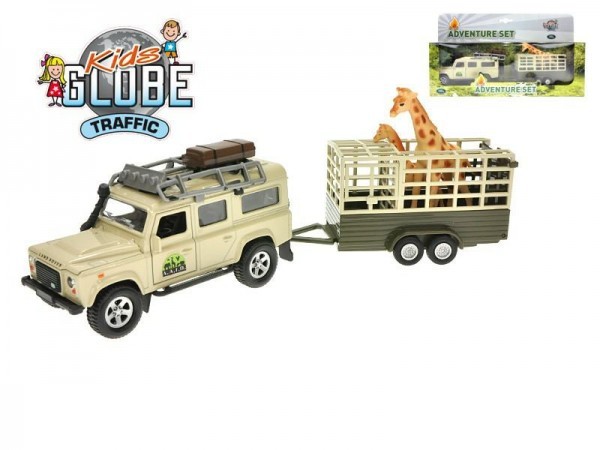 Auto Land Rover Defender kov 13cm s přívěsem a žirafou na zpětné natažení v krabičce