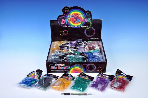 Udělej si svůj náramek - gumičky 300ks s doplňky, 6 barev, v sáčku - 1 kus