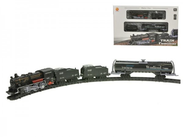 Vlak 15cm + 3 vagóny na baterie s dráhou se světlem a zvukem v krabičce