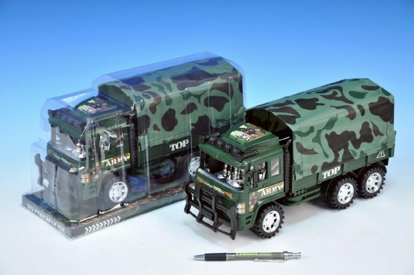 Auto vojenské nákladní plast 30cm s plachtou na setrvačník v krabici