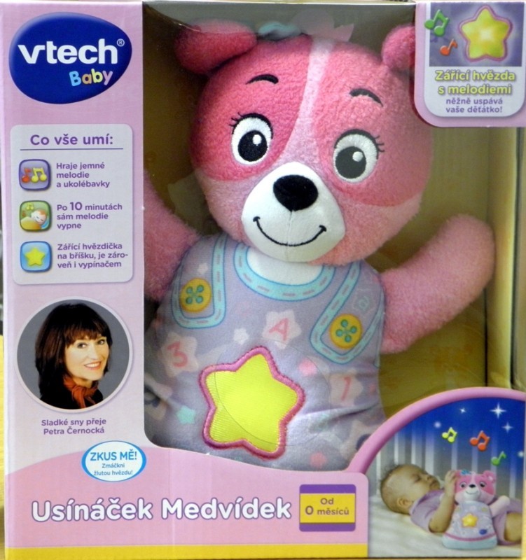 Usínáček Medvídek - růžový Vtech pro nejmenší plyš 22cm na baterie se zvukem se světlem 0+