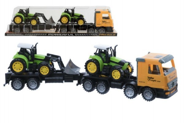 Auto přepravní + 2 traktory plast 65cm na setrvačník v krabici 67x18x14cm