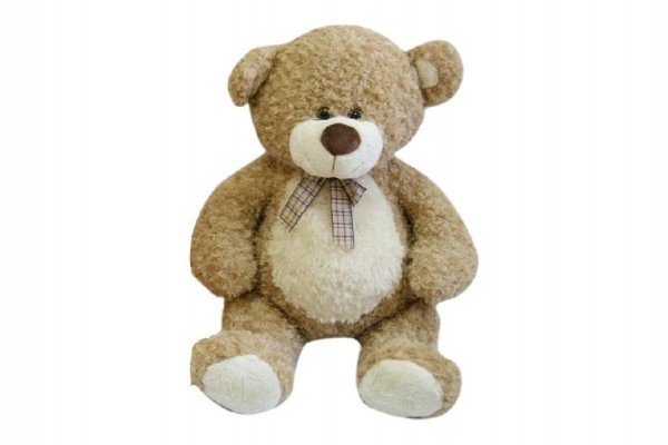 Medvěd s mašlí velký plyš 80cm béžový kudrnatý 0+