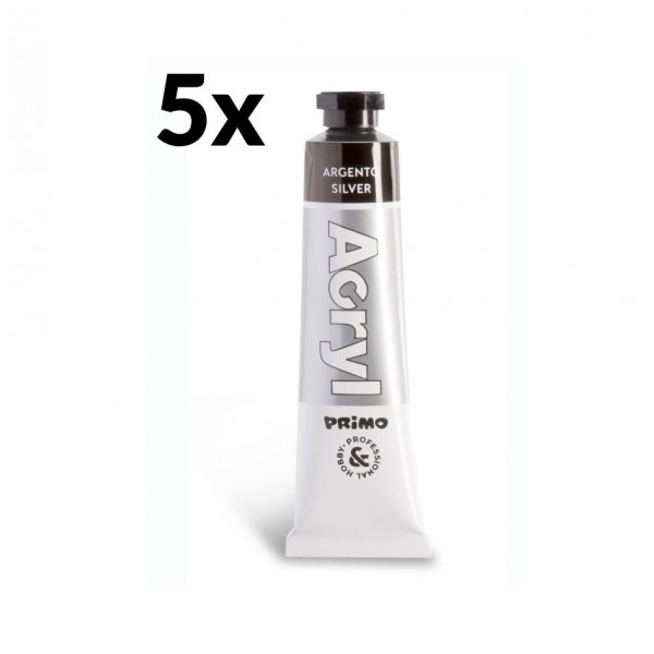 Akrylová barva PRIMO, 18ml, 5ks, stříbrná, tuby