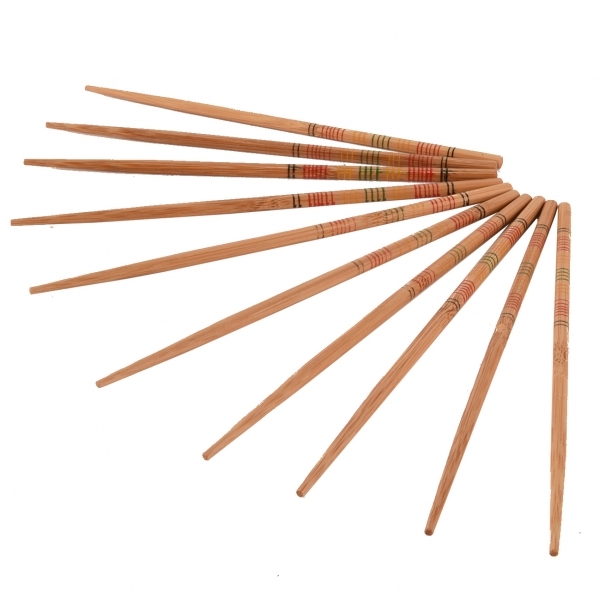 Pałeczki wykonane z bambusowego drewna. Ich popularność rozprzestrzeniła się na cały świat. Jeśli lubisz egzotyczną kuchnię, nie może zabraknąć w Twojej kolekcji tego zestawu 5 par prostych drewnianych pałeczek do wielokrotnego użytku. Pałeczki są lakierowane - lak chroni je przed wilgocią i przed kwasami zawartymi w jedzeniu. Dlatego nie zaleca się mycia pałeczek w zmywarce. Górna część pałeczek jest grubsza, mocniejsza i bardziej kanciasta, dolny koniec jest cieńszy i okrągły. Wymiary: dł. 22,5 cm.