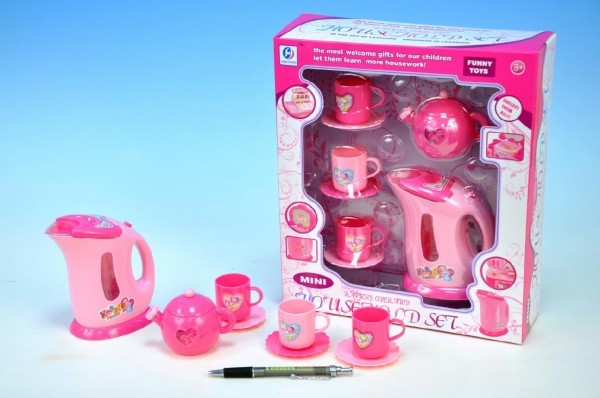 Nádobí - Čajová souprava s rychlovarnou konvicí 12cm na baterie se zvukem se světlem v krabici