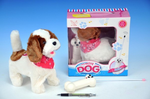 Pes RC plyš 21cm na baterie chodící a štěkající v krabičce