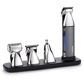 Zastřihovač multifunkční MT996EVýkonný a vodotěsný multifunkční zastřihovač s dobíjecí základnou a indikátorem baterie. Obsahuje čtyři nástavce s magnetickým uchycením pro pohodlnou úpravu a střih vousů nebo chloupků.- Lithium-iontová baterie- Doba chodu na baterii: 2 hodin- Doba nabíjení: 3...
