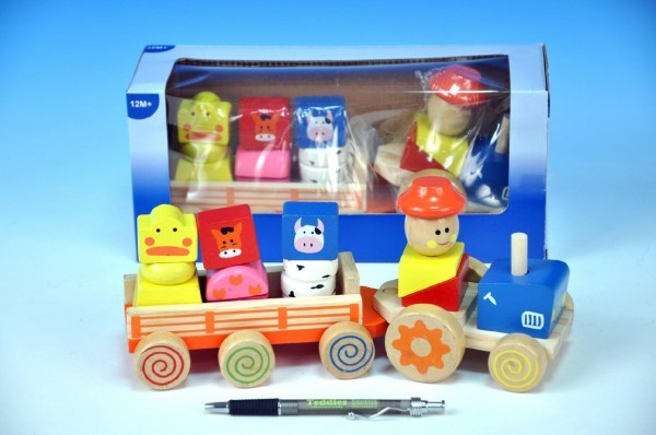 Traktor s přívěsem dřevo 26cm se zvířátky 12m+ v krabičce
