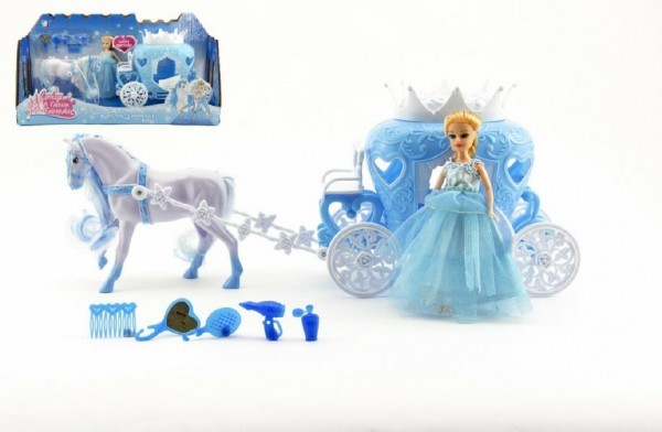 Kůň s kočárem + panenka s doplňky plast 40cm v krabici