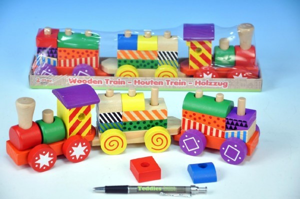 Vlak/Vláček + 2 vagóny 2-Play s kostkami dřevo tahací 34cm