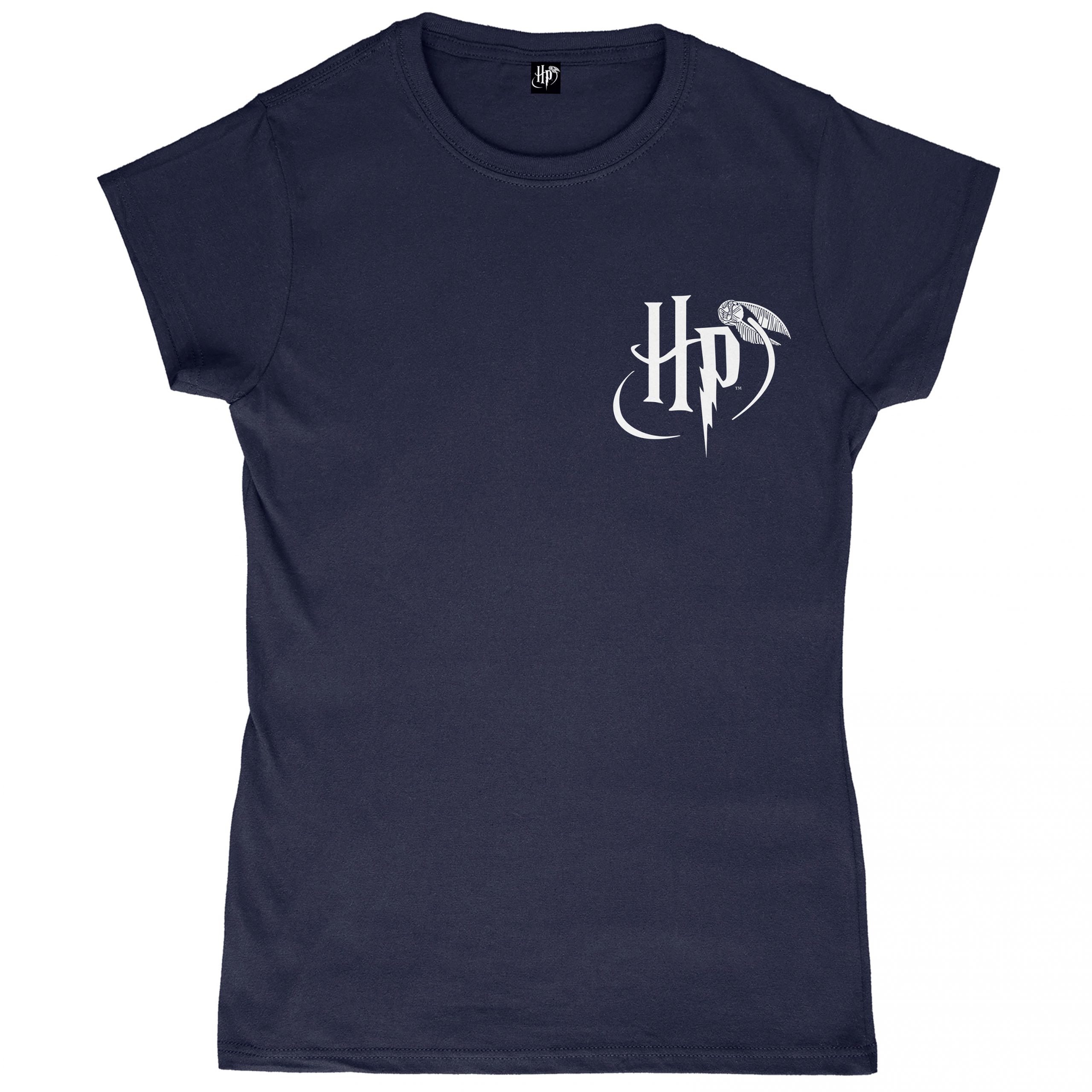 Modré dámské tričko s krátkým rukávem a bílým motivem HP na přední straně.