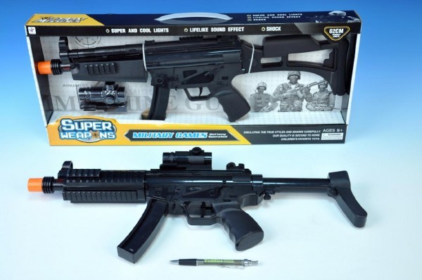 Samopal s optikou plast 60cm na baterie se zvukem se světlem v krabici