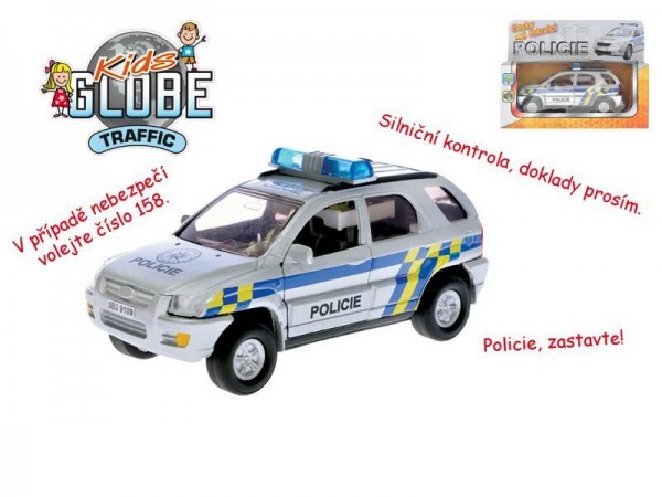 Auto policie kov 13cm česky mluvící na zpětné natažení na baterie se světlem v krabičce