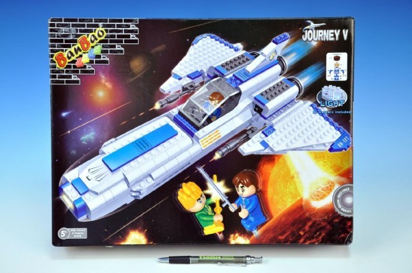 Stavebnice BanBao Vesmírná loď na baterie se světlem 382ks + 3 figurky v krabici 37,5x28,5x6,5cm