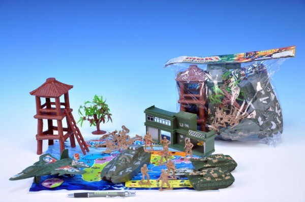 Vojáci plast s doplňky (tanky,loď,rozhledna,mapa) v sáčku