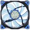 Ventilátor s modrým LED podsvícením. Ventilátor je extra tichý i díky distančním prvkům na těle ventilátoru. Díky tomu se přenáší méně vibrací do celé skříně. Průměr ventilátoru je 120 mm.