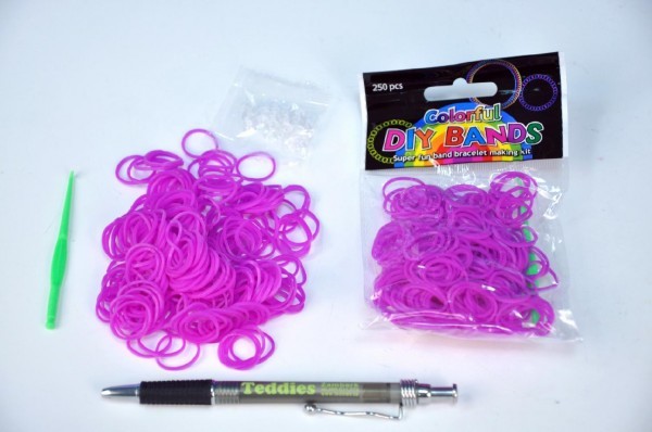 Udělej si svůj náramek - gumičky 250ks fialové s doplňky v sáčku 12ks v PLP