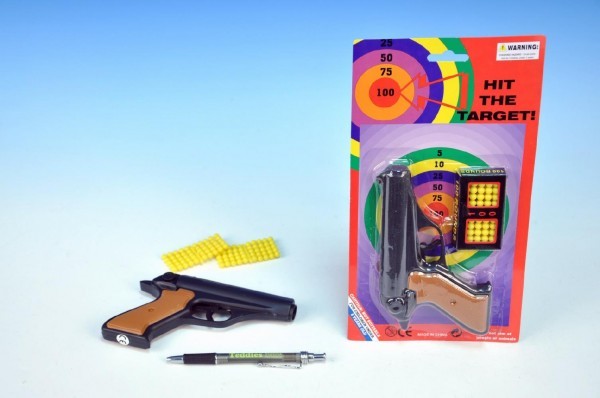 Pistole na kuličky plast 15cm + 100 kuliček na kartě